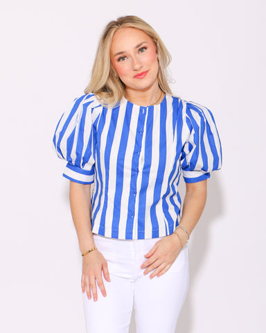 Elevate your everyday wardrobe with this striking Short Sleeve Sweater Top, featuring bold black banding that frames flattering puff sleeves. The s...