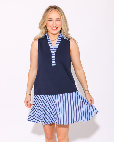 Step into effortless style with this striped long sleeve mini dress. Designed with a ribbed collar and front zipper closure for a sporty-chic vibe,...