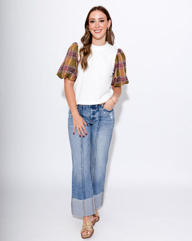 Elevate your style with the Washed Denim Quilted Bust Mix Media Dress in washed blue multi. This dress features a blend of rugged washed denim and ...