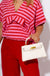 Elevate your everyday with this versatile white handbag, designed for effortless sophistication. Featuring lustrous gold hardware and a structured silhouette, it transitions seamlessly from day to night. Carry it by the elegant handle for polished daytime elegance, or wear it crossbody for hands-free convenience. The perfect companion for any occasion, this statement piece combines timeless style with practical versatility.