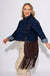 Elevate your everyday style with this luxurious shoulder bag, where refined craftsmanship meets bold design. Featuring rich suede fringe and striking rivet trim details, this piece transforms any outfit into a statement of sophistication. The intricate embellishments showcase your fashion-forward sensibility while the structured silhouette—13.5" L x 11.5" H x 1.5" D—offers practical elegance for work, weekend, or evening occasions. An essential accessory for those who refuse to compromise on quality or style.