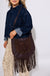 Rivet Trim Suede Fringe Shoulder Bag