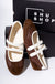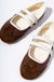 Timeless with a twist, the Salome flat in Brown is a mini take on Parisian-chic. Featuring a deep chocolate base with creamy contrast straps and trim, this Mary Jane style is as stylish as it is sweet.