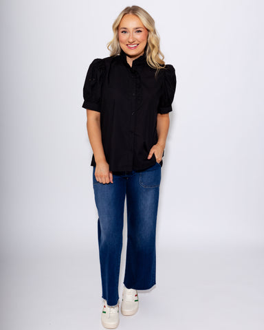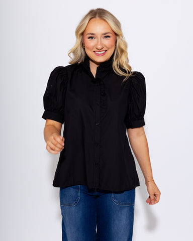 Meet your new go-to blouse for the season. This puff sleeve top features a beautifully ruffled band collar and delicate ruffle trim that frames the...