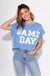 Bring the energy and the style with this oversized ribbed knit tee—your new game day MVP. Featuring bold “GAMEDAY” lettering across the front, rolled short sleeves, and a relaxed fit, it’s the perfect blend of sporty edge and weekend comfort. The textured rib fabric adds depth to your look, while the oversized silhouette makes it perfect for pairing with your favorite denim.