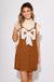 Effortlessly cool with a touch of charm, this overall-style mini skirt features a statement ribbon tie at the front for a feminine twist on a classic silhouette. Designed in a rich camel brown with adjustable straps and a flattering fit, it’s perfect for layering over fitted tops or tees. Dress it up or keep it casual with sneakers.