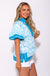 Unleash your inner fashionista with our Blue Moroccan Mosaic Top! This pullover top features a vibrant Moroccan print and contrast caftan-inspired neck band. The bubble sleeves and accent outline slit hem add unique touches. Lightweight and non-sheer, this top is perfect for any occasion.