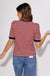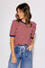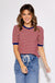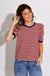 Indulge in effortless style with our Wine and White Contrast Top. This striped pullover boasts structured short sleeves for added sophistication. The knit material is lightweight and breathable, ensuring your comfort all day long. Perfect for any occasion, this non-sheer top is a must-have in your wardrobe.