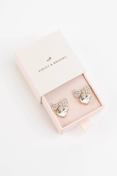 Bow Tie Crystal Post Earrings- Crystal