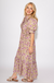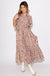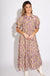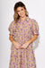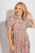 A graceful blend of classic and whimsical, this midi dress features a soft purple floral print with delicate scallop-trimmed inset cuffs on short sleeves. The button-front closure adds timeless charm, while the adjustable waist tie lets you customize your silhouette for effortless elegance. Perfect for garden parties, brunch dates, or sunny weekend strolls, this dress is your go-to for feminine flair and comfort.