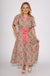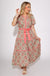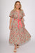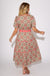 Step into standout style with this printed midi dress, perfect for the teacher who loves to inspire both inside and outside the classroom. Featuring a notched V neckline and wide short sleeves trimmed in bold contrast binding, this dress balances professionalism with personality. The fitted waist and seam detailing flatter your figure, while the coral tie sash with belt loops cinches it all together for a polished, confident look. Adorned in a coral and green floral diamond mosaic pattern, this dress is equal parts artful and effortless — because when your style speaks volumes, your lessons do, too. This dress definitely screams teacher vibes!