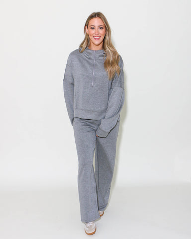 Unwind in ultimate comfort with our Oversized Knit Loungewear Top & Pants Set in Mocha! Featuring a half zip up henley top with a hood and drop...