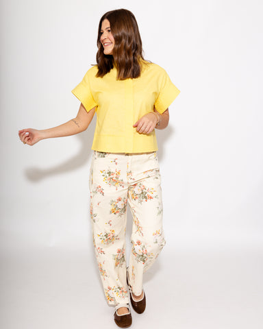 Elevate your everyday wardrobe with this refined short sleeve top in a cheerful yellow hue. Crafted from lightweight woven fabric, it features a so...