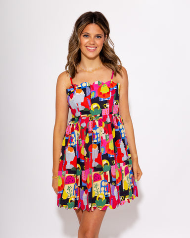 Make a bold entrance in this bright and playful mini dress featuring a vivid abstract print that’s bursting with color. Designed with delicate stra...