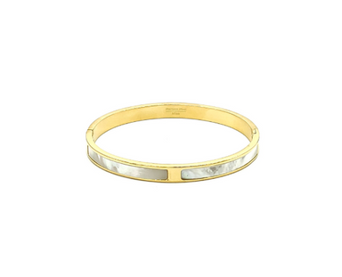 Elevate your wrist game with this stunning stainless steel hinge bracelet, featuring delicate pearlescent accents that gracefully line the band. ...