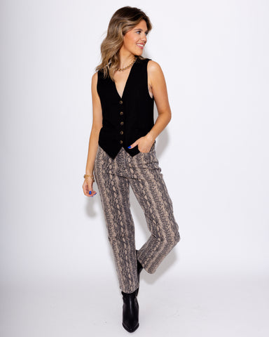 Step into bold style with the Snake Print Jeans. These vintage-inspired straight jeans feature a striking snake print that adds an edgy, fashion-fo...