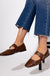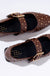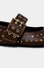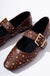 Edgy meets refined. Avril in Brown brings a fresh take on the ballet flat with bold gold studs and a statement buckle strap. Crafted in smooth faux leather, this flat doesn’t play it safe, it's built to stand out. The square toe adds a modern edge, while the dark sole grounds the design with balance. Whether styled with cropped trousers, denim, or oversized blazers, AVRIL is your new go-to for giving soft outfits a touch of rebellion.