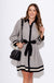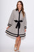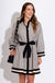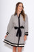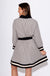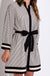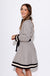 Classic meets contemporary in this effortlessly polished mini dress. Featuring stripes and a flattering waist tie, it’s finished with a contrast collar and button down closure for refined structure. Black and taupe banded detailing at the sleeves and hem elevate the look with understated sophistication. With ¾ sleeves and a tailored silhouette, this dress is your go-to for dinner dates, evenings out, or anytime you want to make an impression—effortlessly.