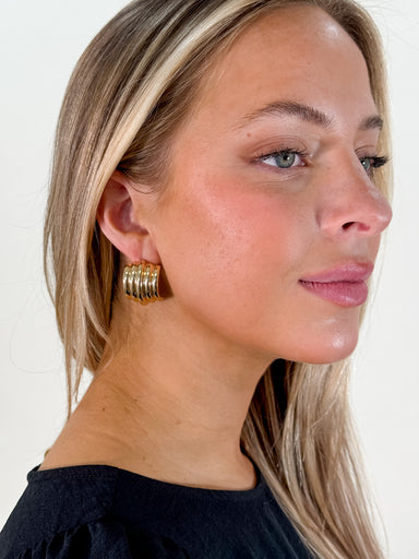 These stunning ribbed rectangle earrings are the perfect addition to any outfit. The unique ribbed design adds texture and interest to these elegan...