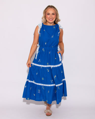 Embrace bohemian beauty in our Floral Print Border Midi Dress! With its vibrant, embroidered flowers and relaxed, tiered silhouette, this sleeveles...