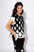 Complete the set with this black smocked top featuring the same playful scattering hexagon print. Lightly smocked at the waist and cuffs, it offers a flattering, comfortable fit. Scalloped sleeve details add a chic, feminine touch, while the unlined design keeps it light and airy. Perfect for pairing with the matching smocked pants for an effortlessly coordinated look or wearing solo with your favorite jeans or skirts.