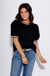 Elevate your everyday wardrobe with this striking black top, designed to make a statement. The short sleeves feature charming puff cup details trimmed in crisp white and bold red, while the round neckline showcases the same sophisticated color-blocking for a polished, intentional look. Perfect for layering or wearing solo, this piece combines classic elegance with modern flair—ideal for those who appreciate thoughtful design details that transform a simple silhouette into something truly special.