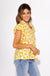Meet your new statement staple. This mustard and cream popover top features a charming mix of abstract squares and triangles in a quilt-inspired print. The puff sleeves add just the right amount of volume, while the flutter collar along the V-neck brings a soft, feminine touch. Breezy yet polished, it’s the kind of piece that turns jeans into an outfit and transitions effortlessly from weekday errands to weekend brunch.