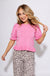 Effortless elegance meets everyday versatility in this charming light pink top. Delicate ruffle trim and cuffed puff sleeves add a touch of feminine sophistication that transitions seamlessly from casual days to special occasions. The short sleeve design keeps you comfortable while the thoughtful details elevate any look—pair it with jeans for relaxed style or dress it up for an evening out. A wardrobe essential that works as hard as you do.