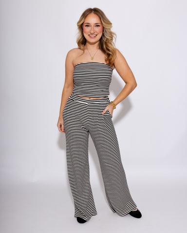 Effortless elegance meets comfort in this coordinated two-piece set. The strapless bandeau top features back smocking for a secure, flexible fit th...