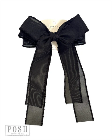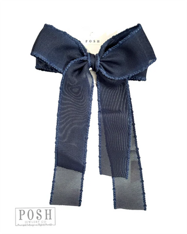 This clip on hair bow features textured ribbon with three full loops and two tails on a French barrette hair clip. One size.