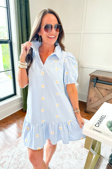 Elevate your style with our Blue Petal Midi Dress! This stunning piece features delicate embroidered florals and a tiered design that exudes elegan...