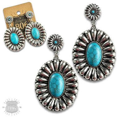 These western style earrings have beautiful raised silver tone beading with a diamond shape stone in the center for some extra pizzazz. Product Det...