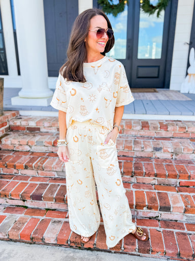 Introducing our French Terry Wide Leg Elastic Waistband Top & Pants set, complete with a stylish graphic print and convenient side pockets. Cra...