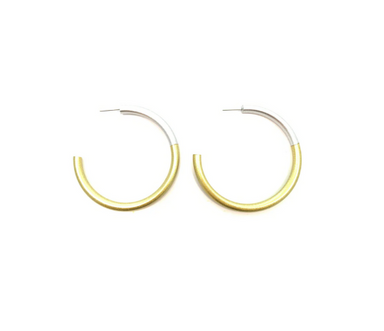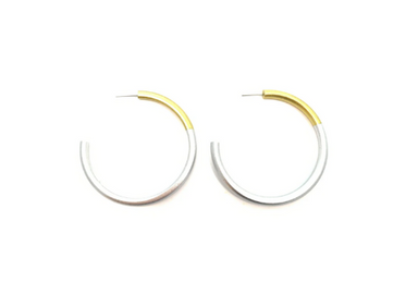 Elevate your style with the LIZ Medium Hoops in Silver and Gold. Handcrafted from lacquered water buffalo horn, these ethically and sustainably mad...