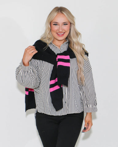 Discover timeless elegance with our Stripe Mock Neck Bell Sleeve Tunic Sweater. This stylish piece features a mock neck for a sophisticated look an...