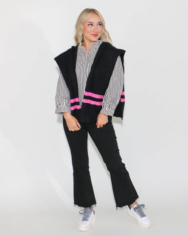 Woven Cape Style Sweater Top in Black