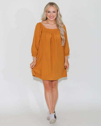 Transform your wardrobe with our Mustard Tunic Dress. This versatile dress features a ruched neckline that can be worn on or off the shoulder, as w...