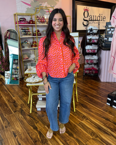 Elevate your everyday wardrobe with this charming Ivy Jane puff sleeve top, featuring a striking hot pink and coral daisy print that brings instant...