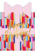 - Birthday present box shaped napkin with fun multicolor design and "happy birthday" in gold foil lettering