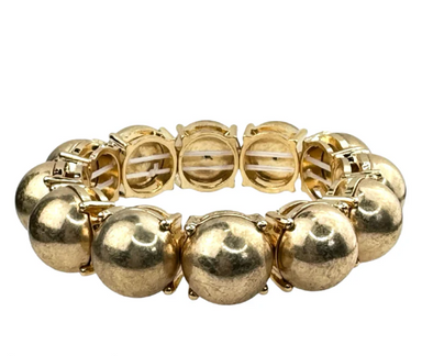 Large half round matte metal tone beads are prong set into this stretch bracelet. Stretches for easy on and off. Product details Matte metal tone...