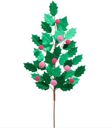 No reviews$ 24.00| /Add a festive touch with the Pink Holly Felt Spray Tree Pick. Crafted from polyester, this 27-inch-long pick features vibrant pink holly berries an...