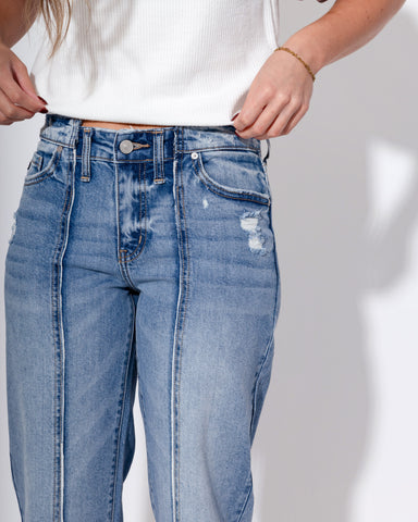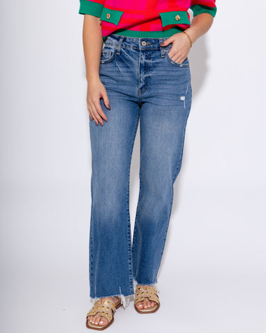 These High Rise Slim Wide Leg Jeans in Medium offer a flattering silhouette that sits above the waist and flows into a relaxed, slim-wide leg. The ...