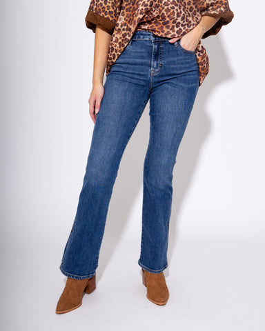 Experience style and comfort with our High Rise Skinny Bootcut Jean in Medium wash. Designed with a flattering 10" rise and a 32" inseam, these jea...