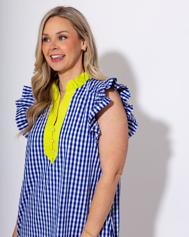 Sweet, timeless, and effortlessly polished — this Gingham Flutter Sleeve Midi Dress is the perfect blend of classic charm and feminine detail. The ...