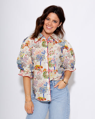 Make a bold, playful statement in our Solar Bloom Top—a standout piece that’s full of personality. Featuring a vibrant abstract starburst pattern i...