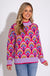 Embrace effortless style with this fuchsia drop shoulder boho floral sweater top. Featuring soft ribbed binding, it offers a comfortable, relaxed fit perfect for layering or wearing on its own. The vibrant floral design adds a playful yet sophisticated touch to your wardrobe, making it an ideal choice for casual outings or cozy days.