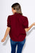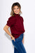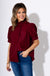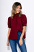 Meet your new go-to blouse for the season. This puff sleeve top features a beautifully ruffled band collar and delicate ruffle trim that frames the top three buttons—adding a soft, feminine touch to a classic silhouette. The cuffed sleeves give it structure, while the rich burgundy hue makes it a perfect transition piece into fall. Lightweight, non-sheer, and unlined for easy layering—whether you're styling it with trousers for work or denim for a laid-back weekend look.