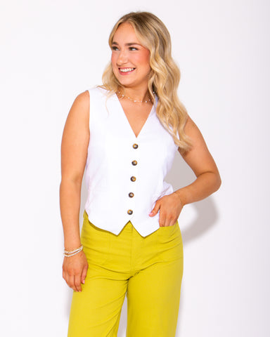 Elevate your layering game with the Cream Textured Knit Sweater Vest. Crafted in a soft, textured knit, this vest features contrast striped trim al...