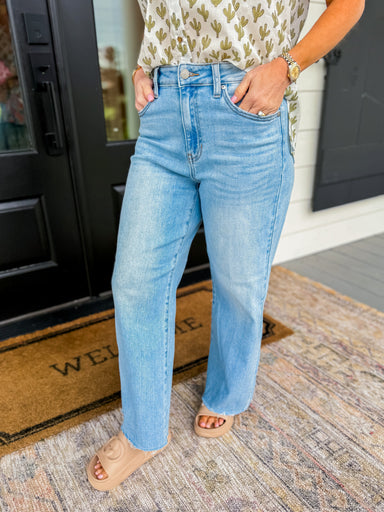 Elevate your denim game with our High Rise Wide Leg Jeans. Made from comfort stretch denim, these jeans feature a flattering high rise waist and s...