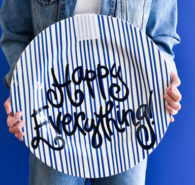 We can’t get enough of stripes! Our Indigo Skinny Stripe Big Happy Everything! Round Platter combines the organic look of hand-drawn indigo blue st...